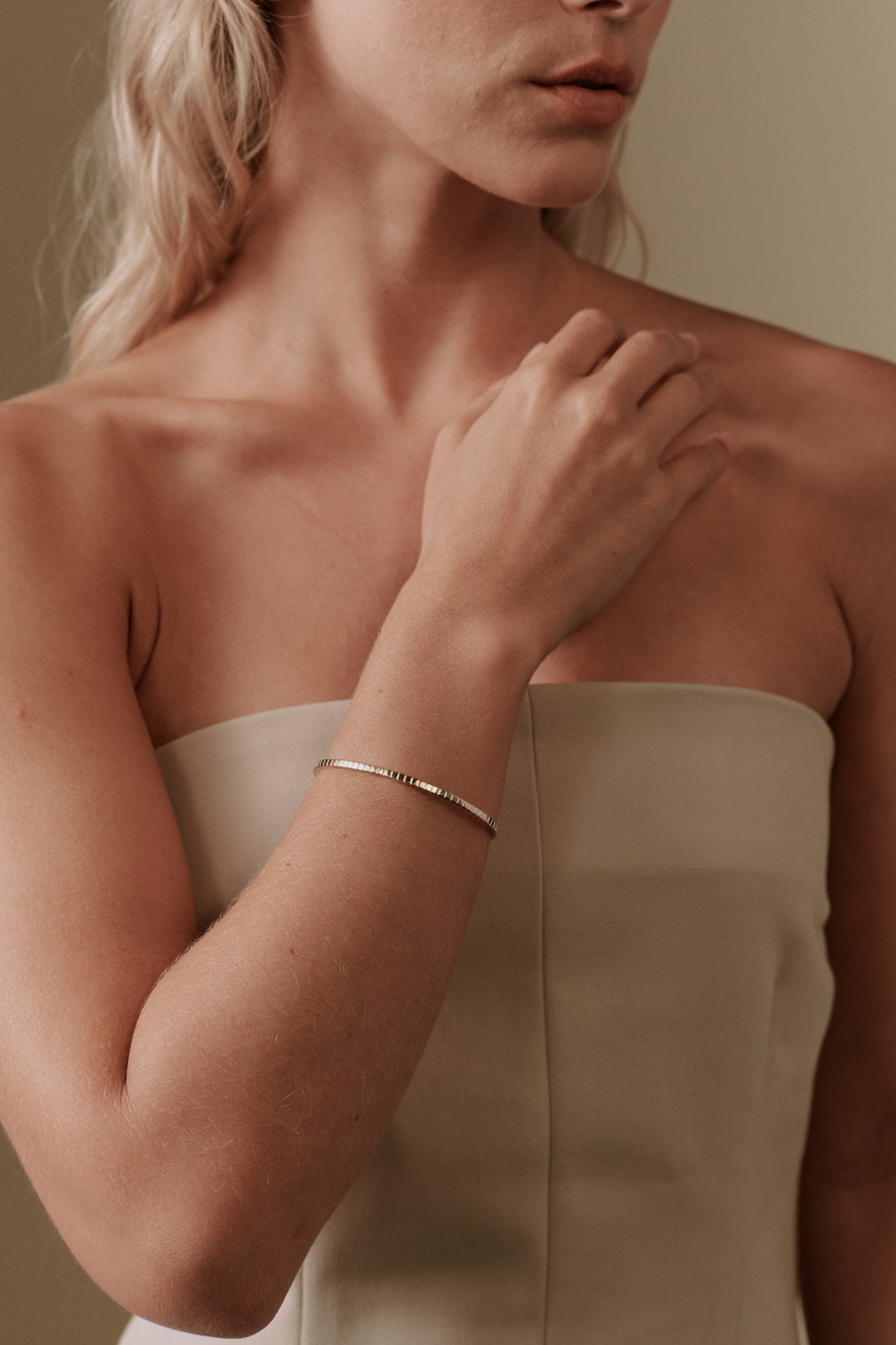 The Scarlett Cuff is a sleek, minimalist piece with a modern twist—perfect for stacking or wearing solo.
